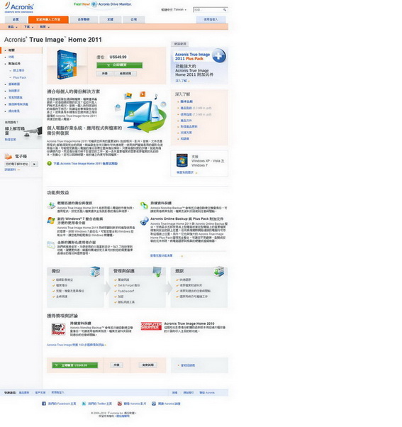 軟體名稱:Acronis True Image Home 2011 系統備份軟體 繁體中文.英文版